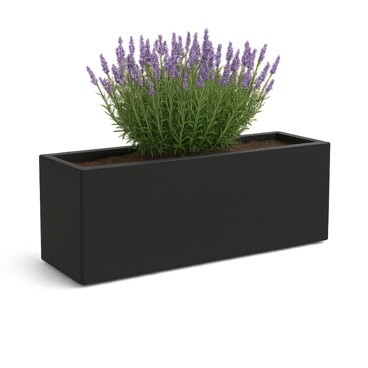 ¡Pide ahora tu jardinera de poliéster 120x30x50 cm en Negro Intenso (RAL 9005)!