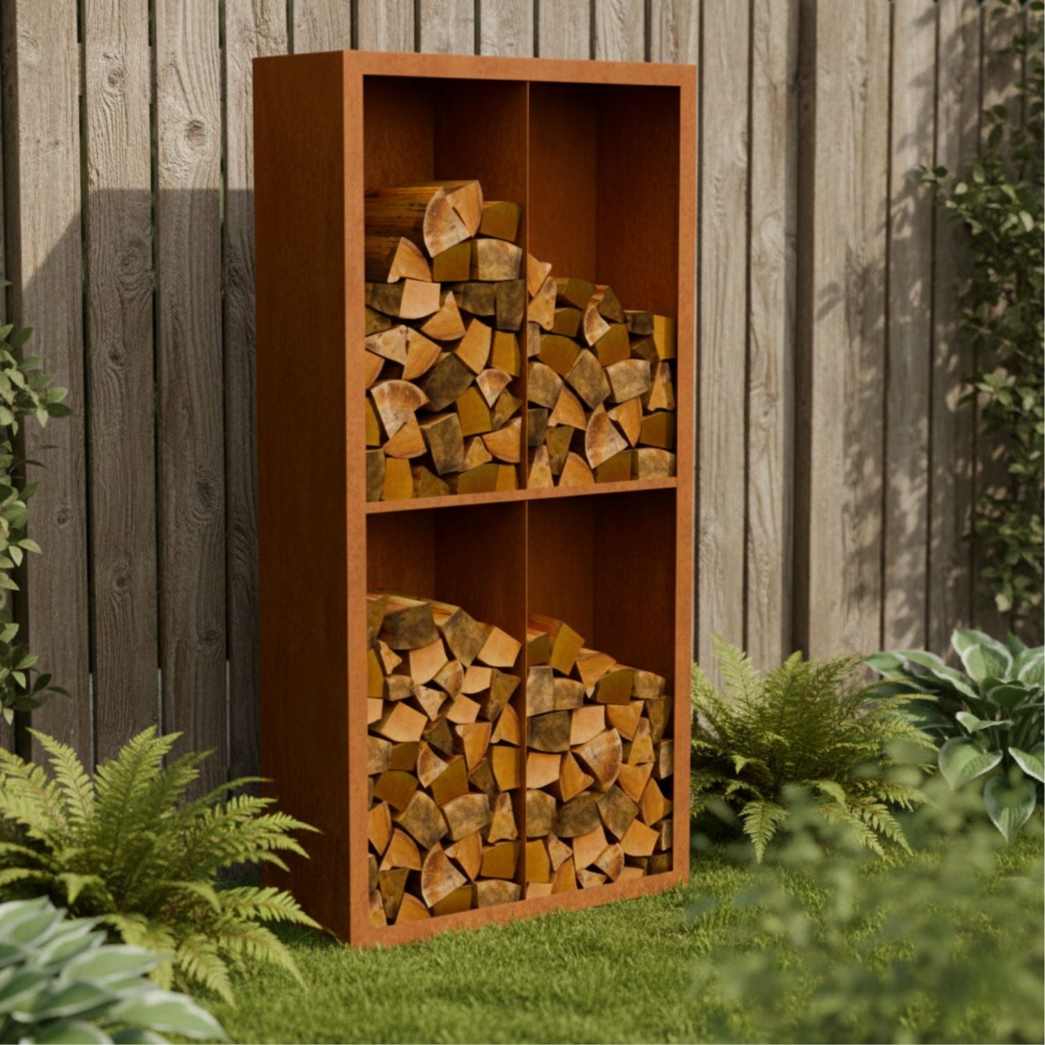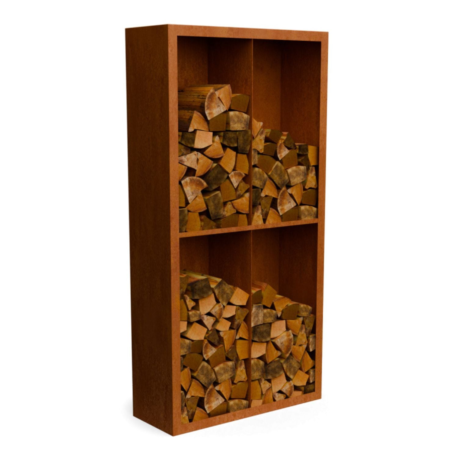 Cortenstalen houtopslag met 4 Vakken met achterwand 100x38,5x200 cm