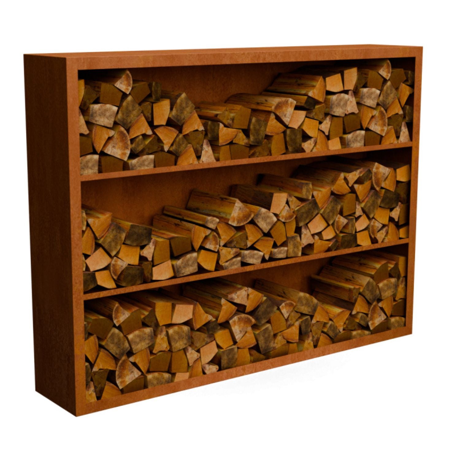 Cortenstalen houtopslag met 3 Vakken met achterwand 200x38,5x150 cm