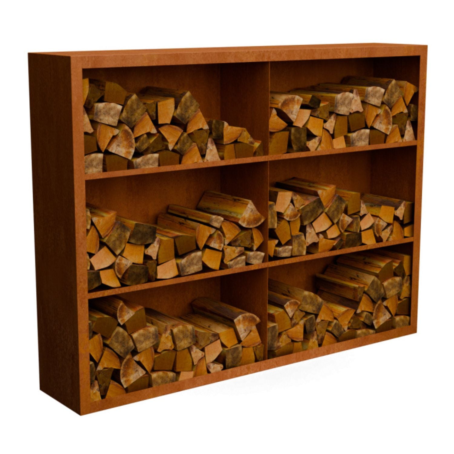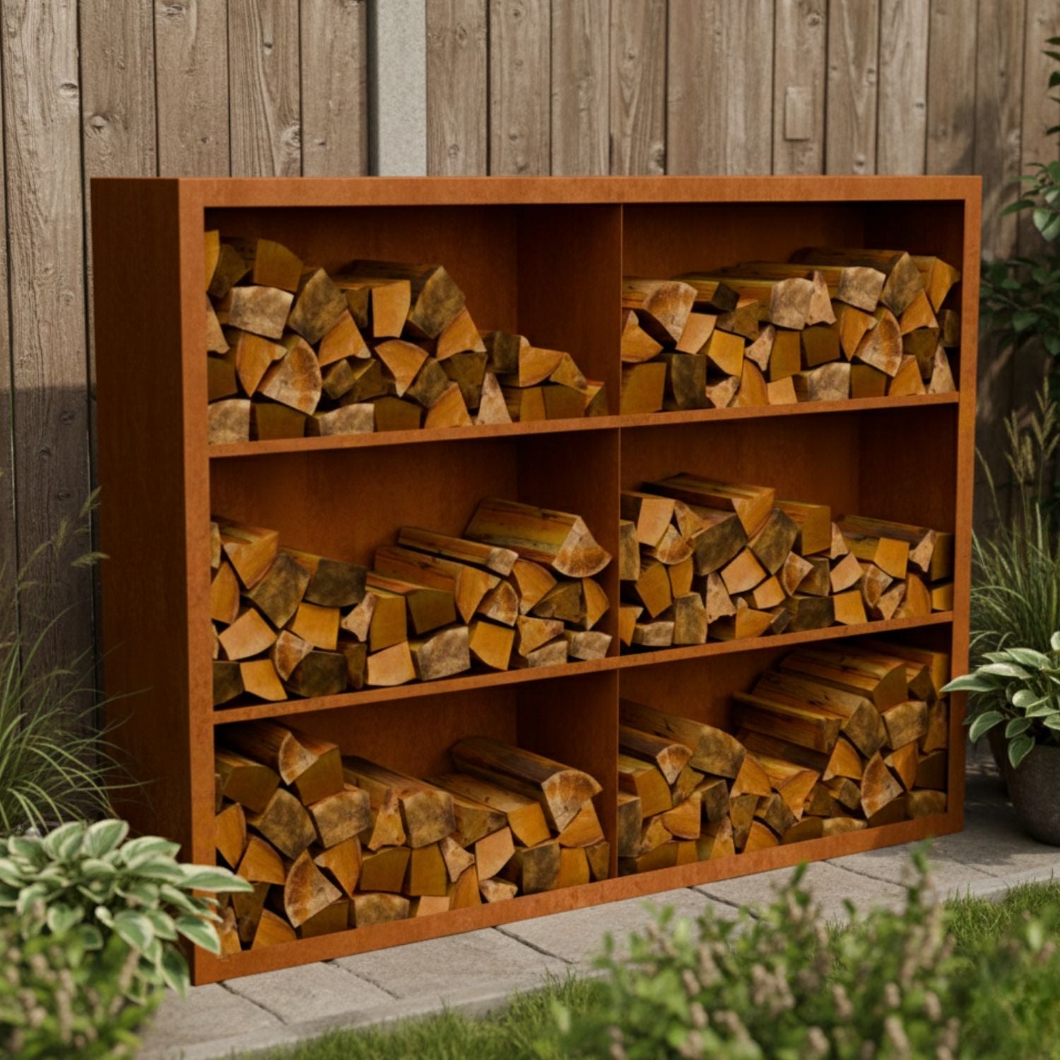 Cortenstalen houtopslag met 6 Vakken met achterwand 200x38,5x150 cm