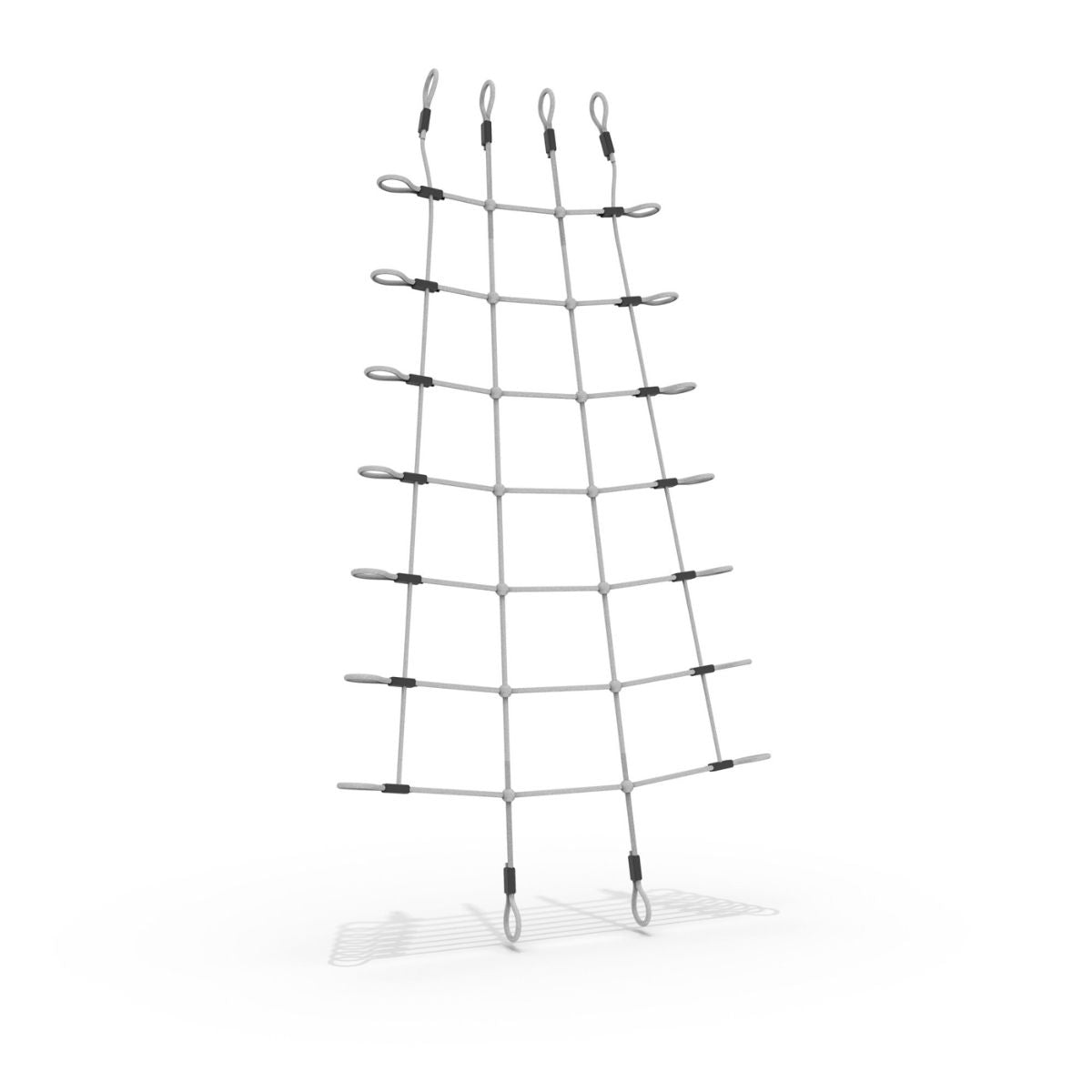 La red de escalada mide 100 x 210 cm y está hecha de una robusta cuerda de poliéster de 12 mm de grosor. Este material es duradero, dimensionalmente estable y soporta un uso prolongado en exteriores. A la vez, es flexible y suave, ideal para las manos de los niños que adoran agarrar y colgar. Gracias a su color gris claro, la red también tiene un aspecto relajante y se integra a la perfección en cualquier jardín.
