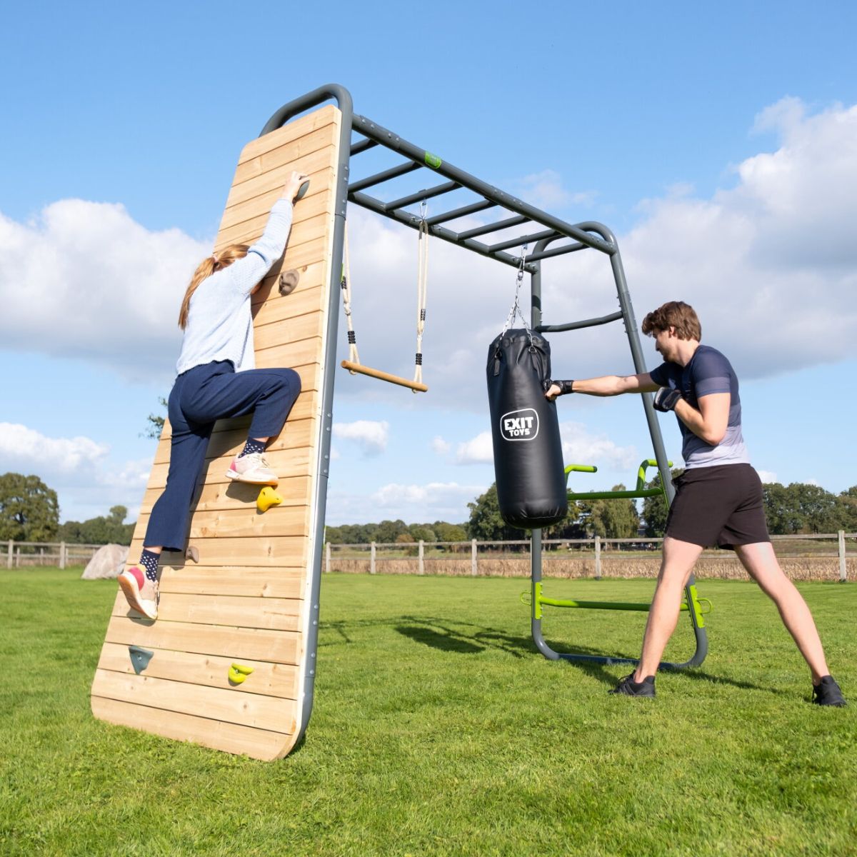 ¿Buscas un equipo multifuncional que anime a niños y adultos a moverse, despierte la imaginación y ofrezca infinitas posibilidades deportivas? Entonces, la barra de mono EXIT GetSet MB220 es la opción perfecta para tu jardín. Con más de tres metros de largo y un impresionante conjunto de accesorios incluidos, esta robusta estructura de juego y fitness está diseñada para toda la familia: desde niños pequeños hasta adolescentes y padres. Ya sea que quieras escalar, columpiarte, hacer ejercicio o simplemente disfrutar de la actividad al aire libre juntos, la MB220 lo tiene todo.