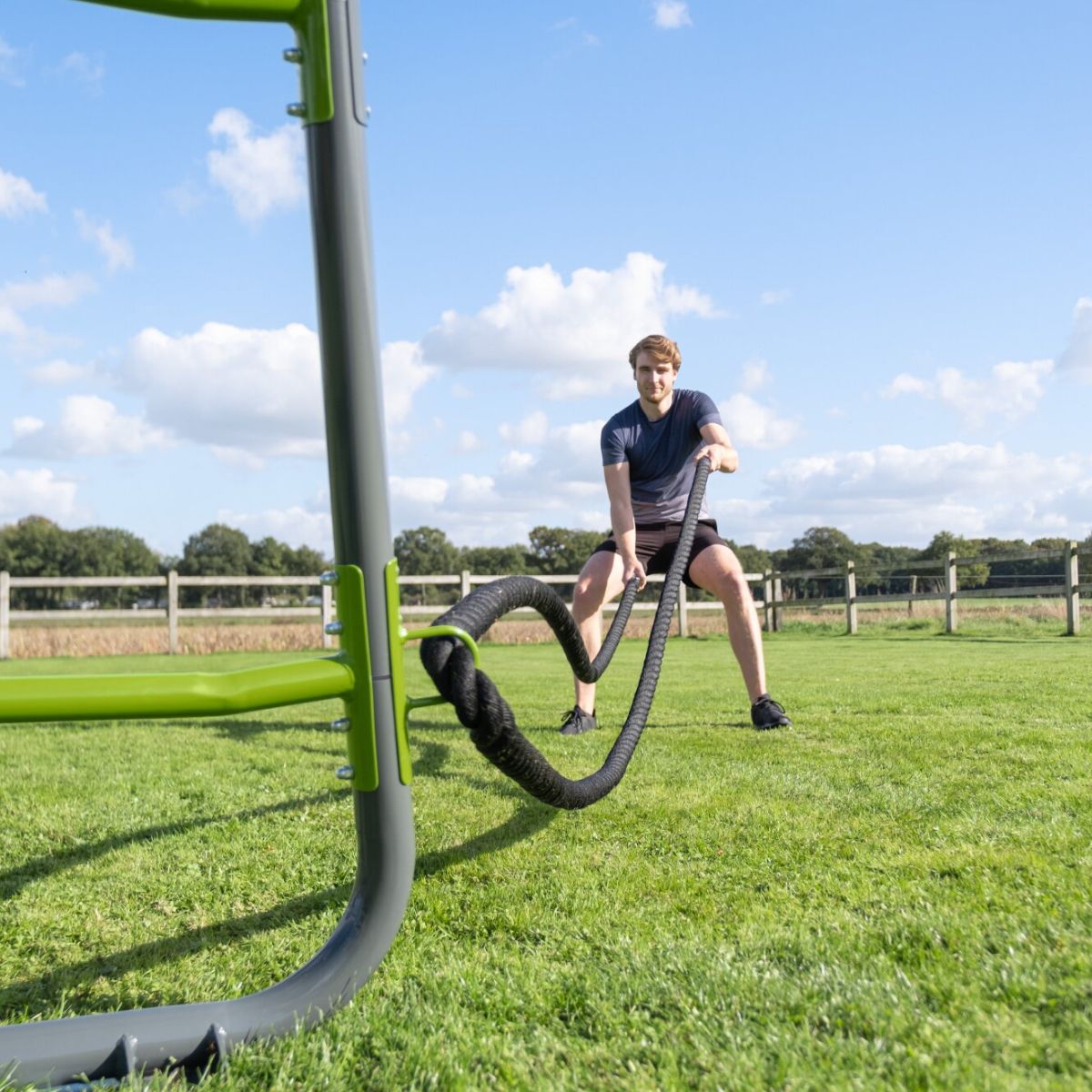 Cambia fácilmente de accesorio gracias al sistema de montaje de liberación rápida. ¿Quieres ampliar? Añade elementos deportivos GetSet adicionales, como un banco de fitness multifuncional o elementos de juego como una red de escalada o un columpio para los más pequeños. De esta manera, el equipo se adapta a tu etapa de vida y a tus objetivos.