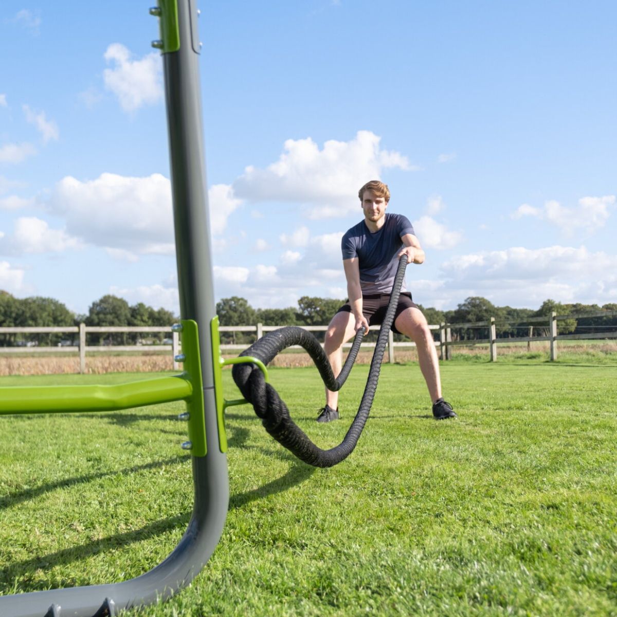 El robusto anclaje con hormigón de fraguado rápido garantiza que el equipo se mantenga firme como una roca, incluso con varios usuarios activos o en condiciones de tormenta. El kit de anclaje (sin hormigón de fraguado rápido) y las claras instrucciones de montaje se incluyen de serie. Esto le permite crear fácilmente una base segura en su jardín.