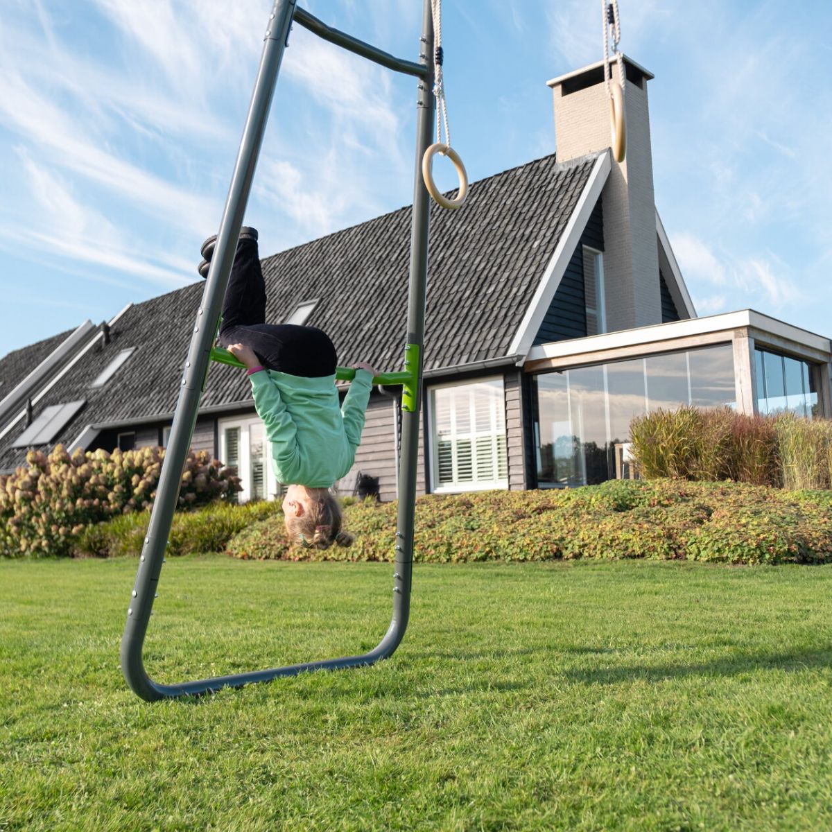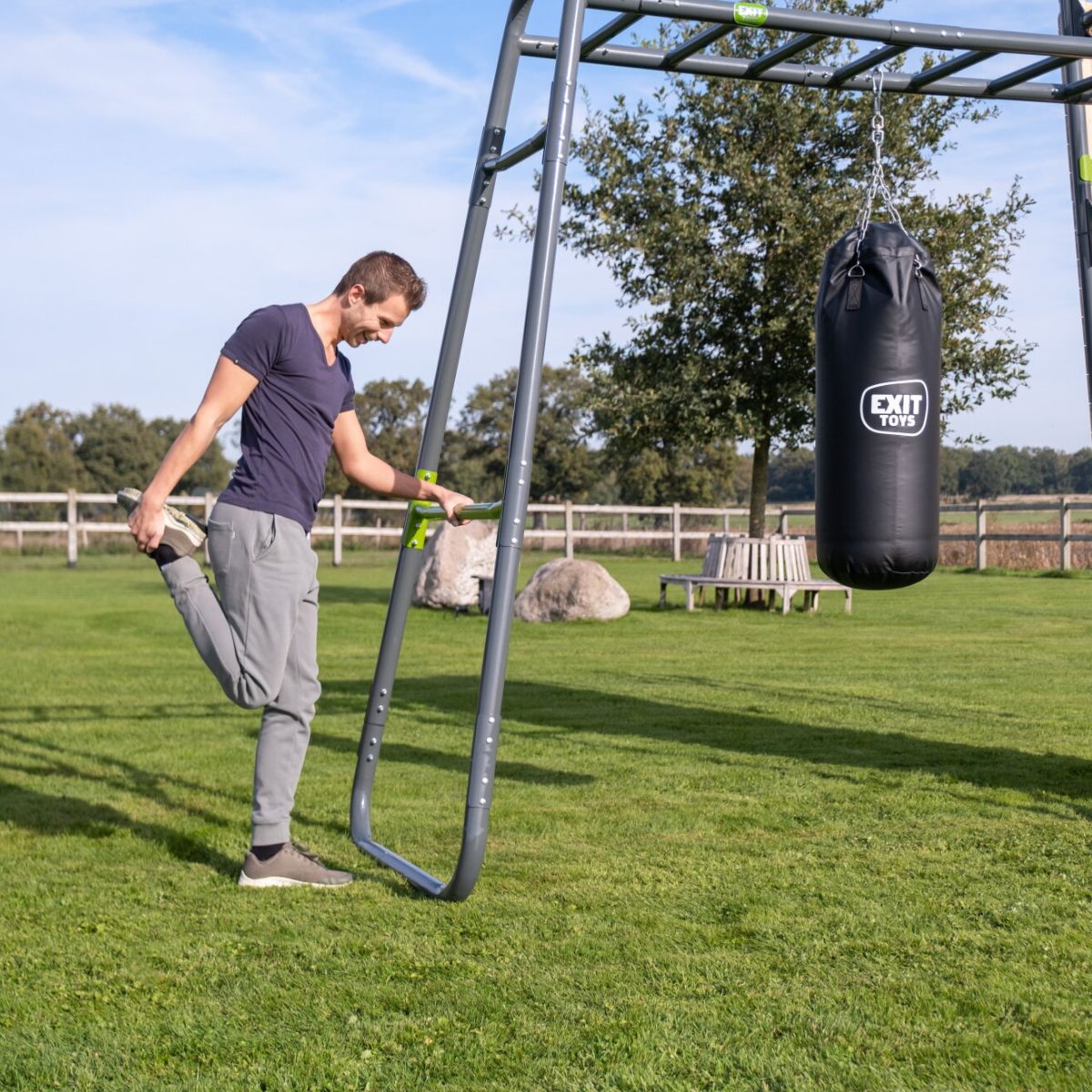 ¿Quieres ampliar tu equipo GetSet con un accesorio versátil apto tanto para niños como para adultos? La barra de ejercicios EXIT GetSet añade un toque lúdico y deportivo a tu barra de mono o estación de fuerza. Esta robusta barra verde es compatible con todos los modelos GetSet de las series MB200, MB300, PS500 y PS600 y ofrece infinitas posibilidades de movimiento, desde balancearse y hacer volteretas hasta dominadas y flexiones. Para jugar, aprender y entrenar Apto para niños y usuarios activos Para los niños, la barra de ejercicios es una fuente de diversión: pueden colgarse, columpiarse, girar y practicar sus primeros trucos. También es perfecta para adolescentes y adultos que quieran ampliar su entrenamiento al aire libre. Úsala para hacer dominadas, fondos o como apoyo durante las flexiones: una forma sencilla pero eficaz de entrenar la fuerza y la coordinación al aire libre. Acero robusto con revestimiento duradero Resistente a la intemperie y a los arañazos La barra de ejercicios está fabricada en acero galvanizado con recubrimiento en polvo, lo que la hace resistente al óxido, los arañazos y a cualquier condición climática. Llueva o truene, esta barra se mantiene robusta, segura y atractiva. Su diseño duradero garantiza años de diversión al aire libre. Fácil instalación en tu equipo GetSet La barra de ejercicios se instala de forma rápida y segura en cualquier barra de mono o estación de energía GetSet. Puedes encontrar este accesorio en el manual, con el número de pieza 54.90.17.00. Incluye todo lo necesario para el montaje, así que estarás listo en minutos. Precaución: Para un uso seguro Para una seguridad óptima, recomendamos no combinar la barra de ejercicios con un columpio en el mismo equipo. Esto evita colisiones durante el uso y crea un entorno de juego o entrenamiento seguro para todos.