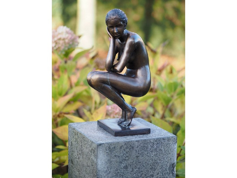 Met het bronzen Gehurkte vrouw beeld kies je niet alleen voor een prachtige toevoeging aan je collectie, maar ook voor een stukje eeuwigheid dat generaties lang zal blijven schitteren.