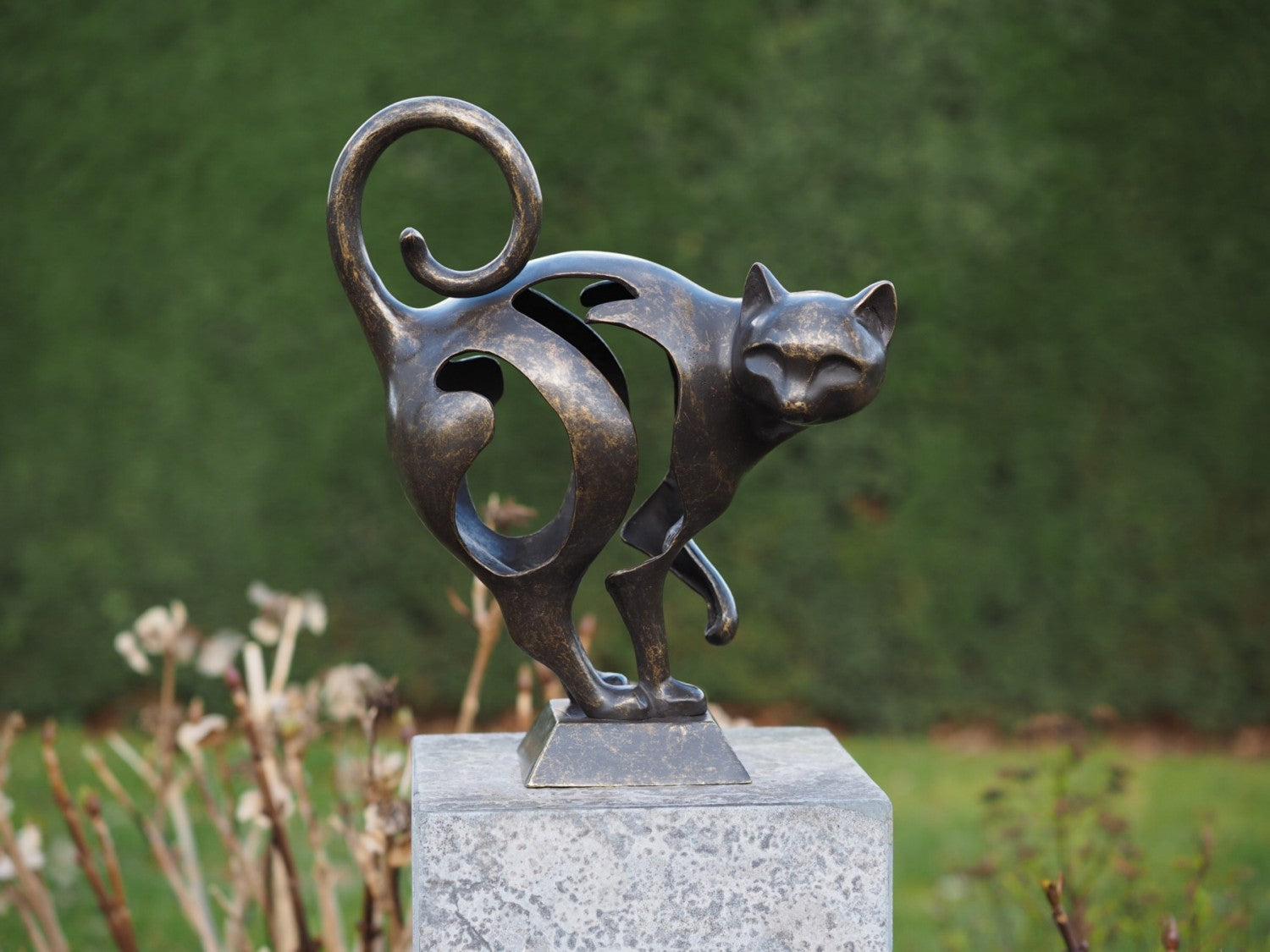 Ondanks de robuustheid van brons, is onderhoud eenvoudig. Om de schitterende patina te behouden, raden wij aan het beeld twee keer per jaar licht in te wrijven met kleurloze was. Ook is het belangrijk om vogelpoep snel te verwijderen met lauw water en een zachte spons. Zo blijft je beeld in topconditie, jaar na jaar.