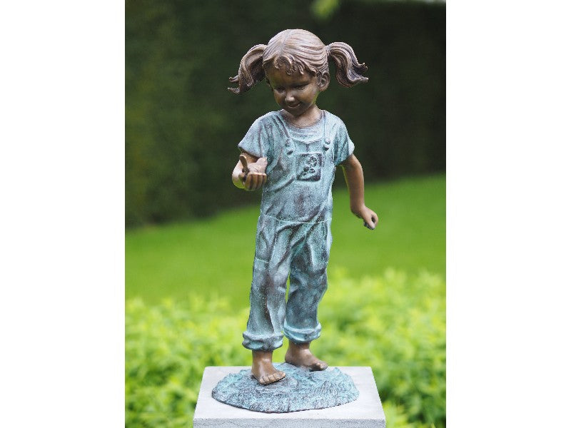 Bronzen beeld Meisje met vogel in haar hand 50x27x20cm