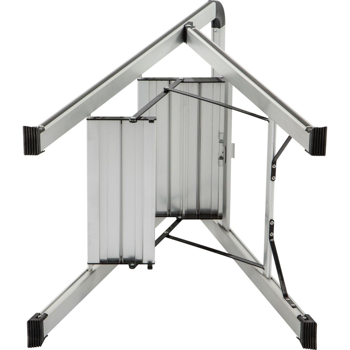 Het aluminium is geanodiseerd, wat voorkomt dat je handen vuil worden of dat het materiaal gaat corroderen. Daarnaast is de trap ingeklapt slechts 5,5 cm breed, waardoor hij weinig ruimte inneemt bij opslag.
