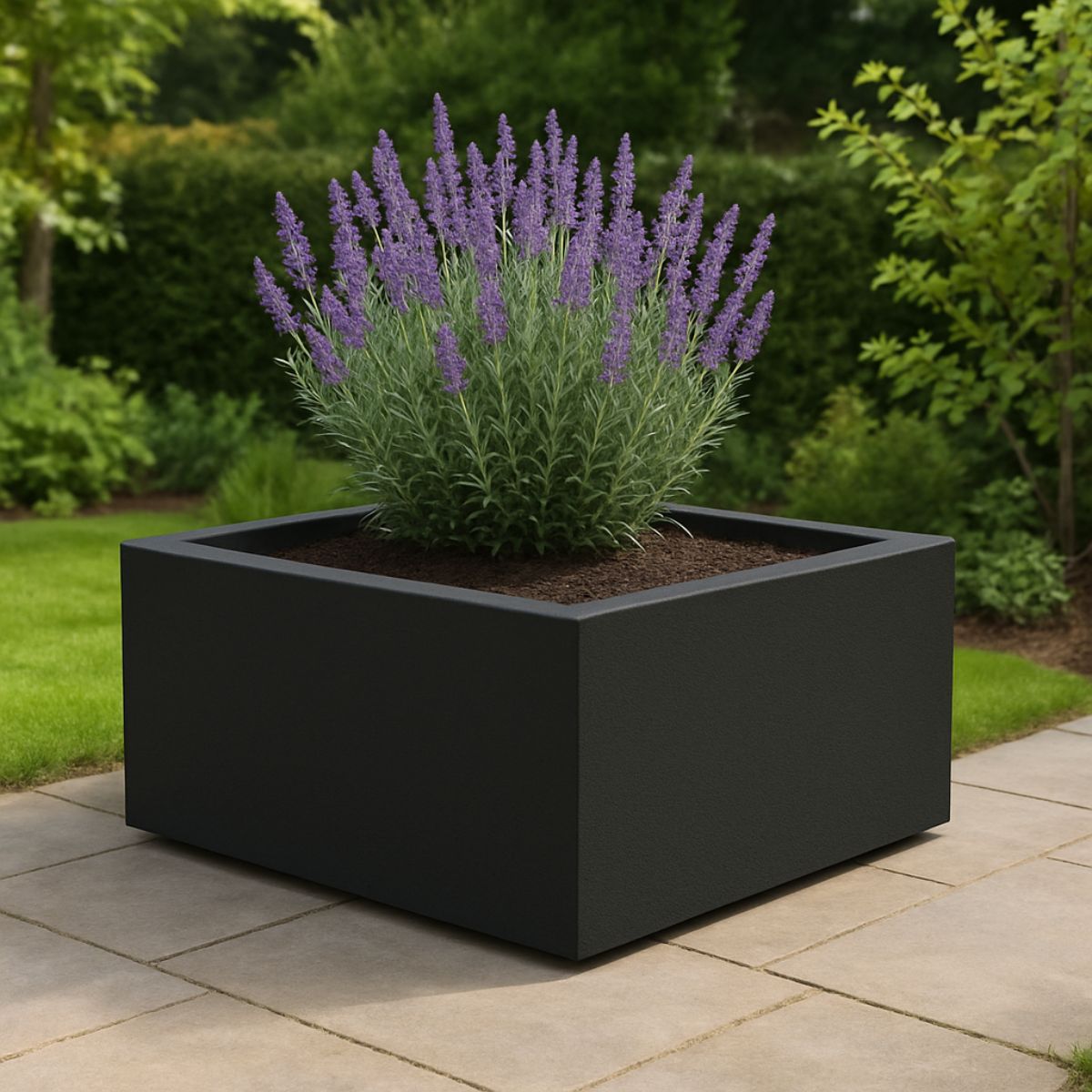 Dankzij het compacte formaat van 100x100x40 cm is deze plantenbak ideaal voor zowel grote tuinen als kleine balkons. Je kunt hem gebruiken als opvallend solitair stuk of combineren met andere maten voor een speels en gelaagd effect. Creëer eenvoudig een gezellige hoek met groene planten, kleurrijke bloemen of zelfs kleine struiken. De mogelijkheden zijn eindeloos!