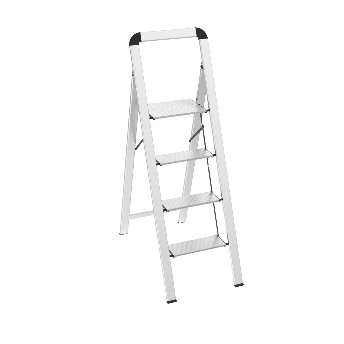 Ingeklapt is de trap slechts 4,5 cm diep, waardoor je hem moeiteloos achter een deur, in een kast of berging kunt opbergen. Het geanodiseerde aluminium maakt de trap onderhoudsvriendelijk en voorkomt vuile handen of corrosie.