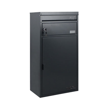 Le SafePost 65 est une solution élégante et sécurisée pour la réception de colis et d'envois de courrier volumineux. Cette boîte aux lettres gris anthracite est en acier robuste et dispose d'un compartiment à colis et d'une serrure à cylindre avec deux clés. La boîte aux lettres peut être montée au mur ou placée de manière autonome à l'aide du matériel de montage fourni et du support SafePost 1414 en option.