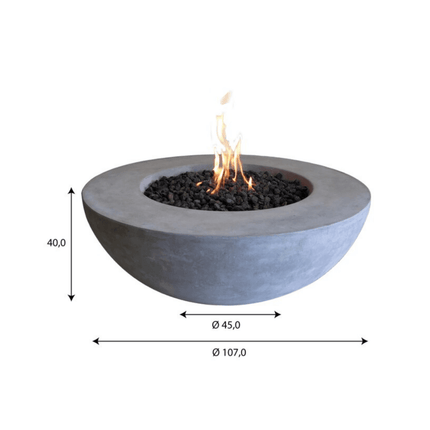 - La table à feu ronde Elementi Etna grise résiste au gel et peut être laissée dehors toute l'année
