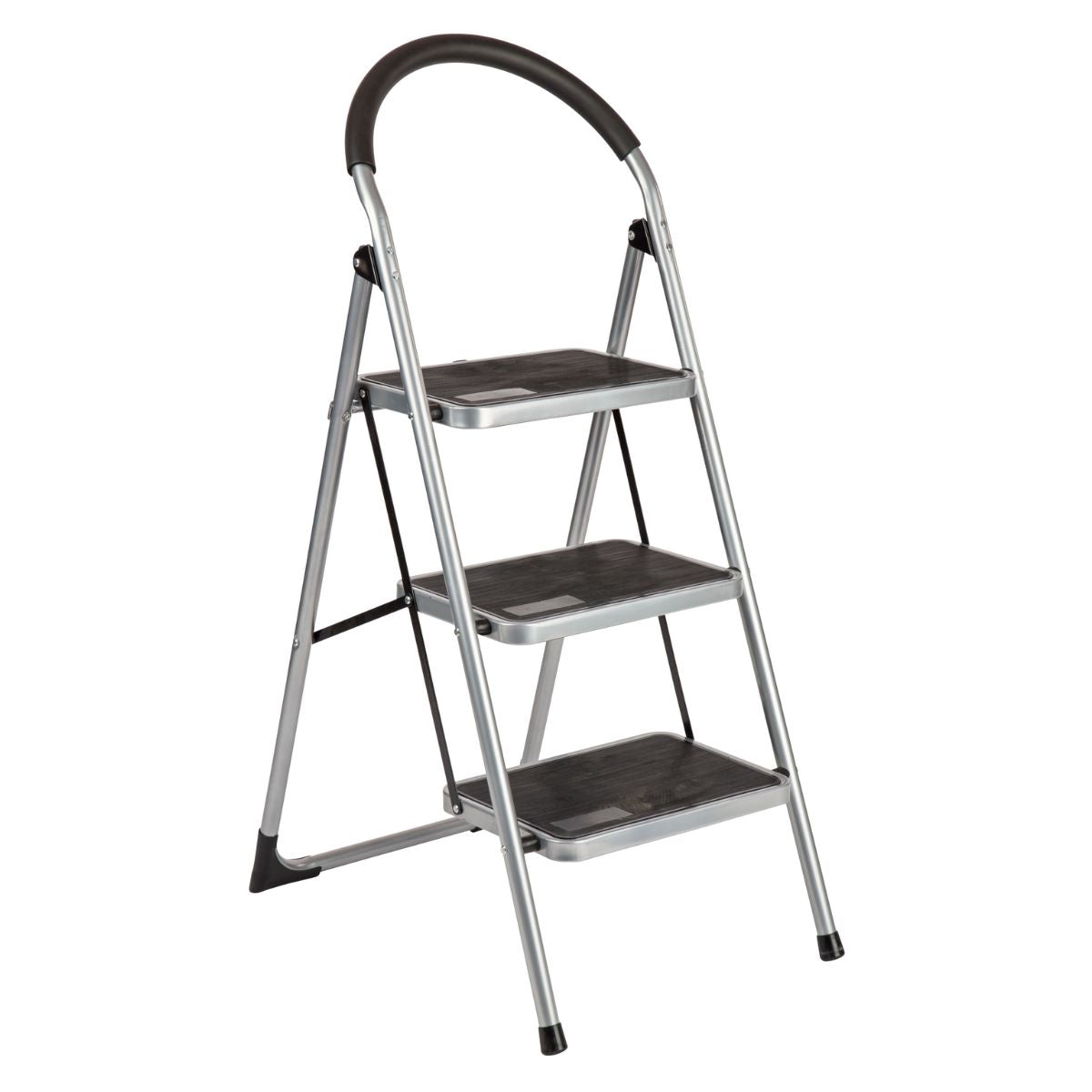 Les marches de 38 x 26 cm sont dotées d'un revêtement antidérapant pour une bonne stabilité. Les trois marches sont également équipées d'un système de verrouillage automatique pour plus de sécurité.
