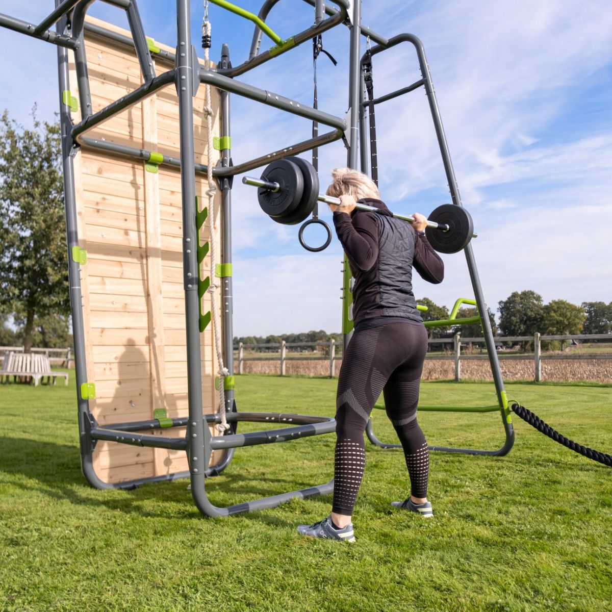 Vous recherchez une solution tout-en-un pour la musculation, le cardio et la coordination, directement dans votre propre jardin ? L'EXIT GetSet PS620 est un rack de fitness extérieur haut de gamme de plus de six mètres, conçu pour les sportifs de 14 ans et les adultes qui souhaitent tirer le meilleur parti de leur entraînement. Avec douze accessoires inclus, dont un sac de frappe, un banc de fitness, une barre de singe et un mur d'escalade, vous pouvez créer une salle de sport extérieure complète pour chaque jour, chaque instant et chaque niveau.