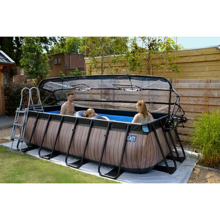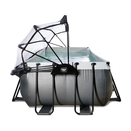 EXIT Piscine en cuir noir 400x200x100cm avec pompe à filtre à sable et auvent - noir