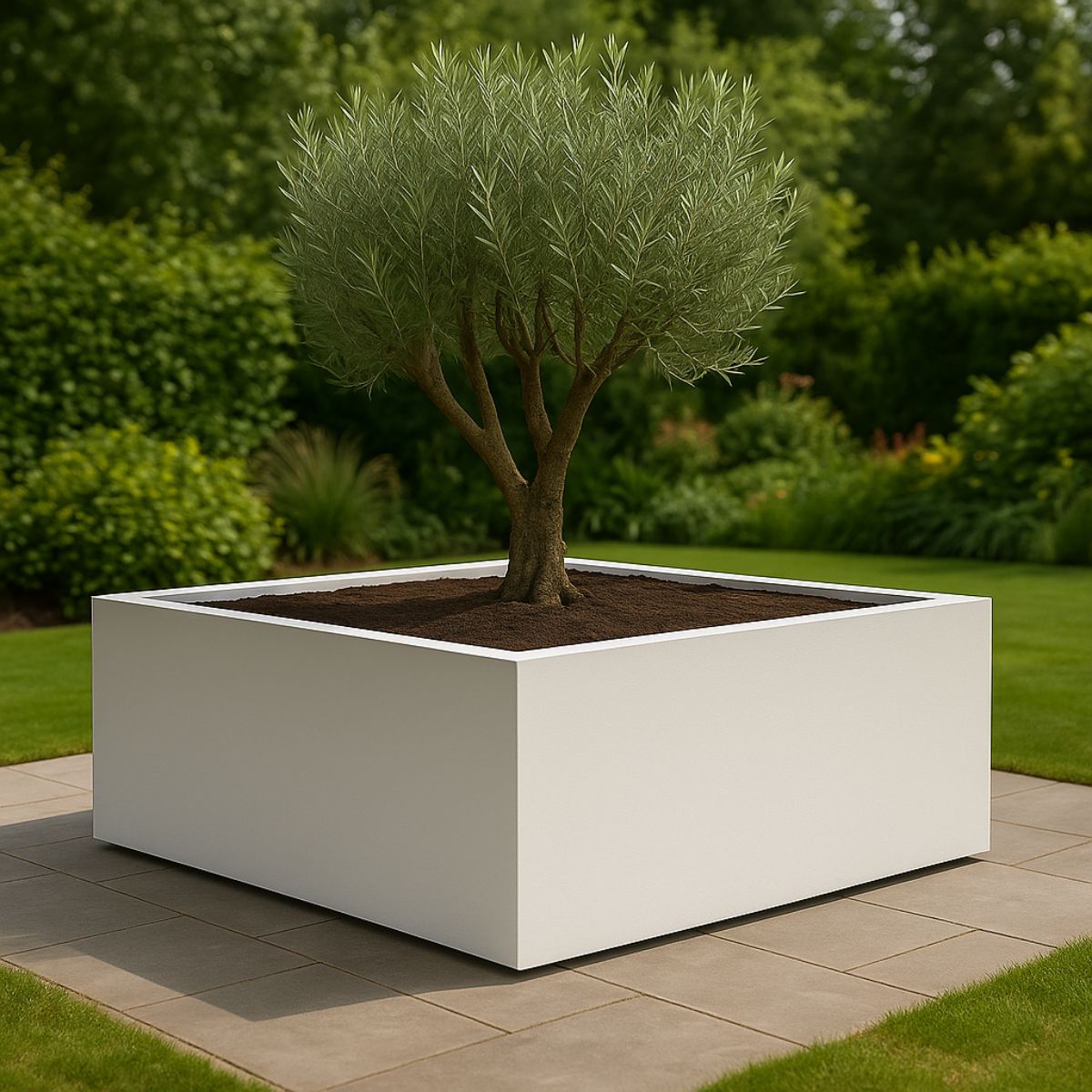 Commandez dès aujourd'hui la jardinière en polyester GARDRA 200x200x60 cm en blanc pur