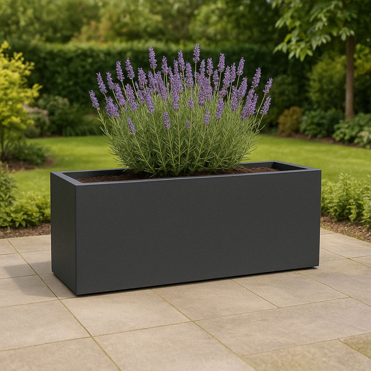 Commandez dès aujourd'hui votre jardinière en polyester 120x40x50 cm Noir-gris (RAL 7021) !