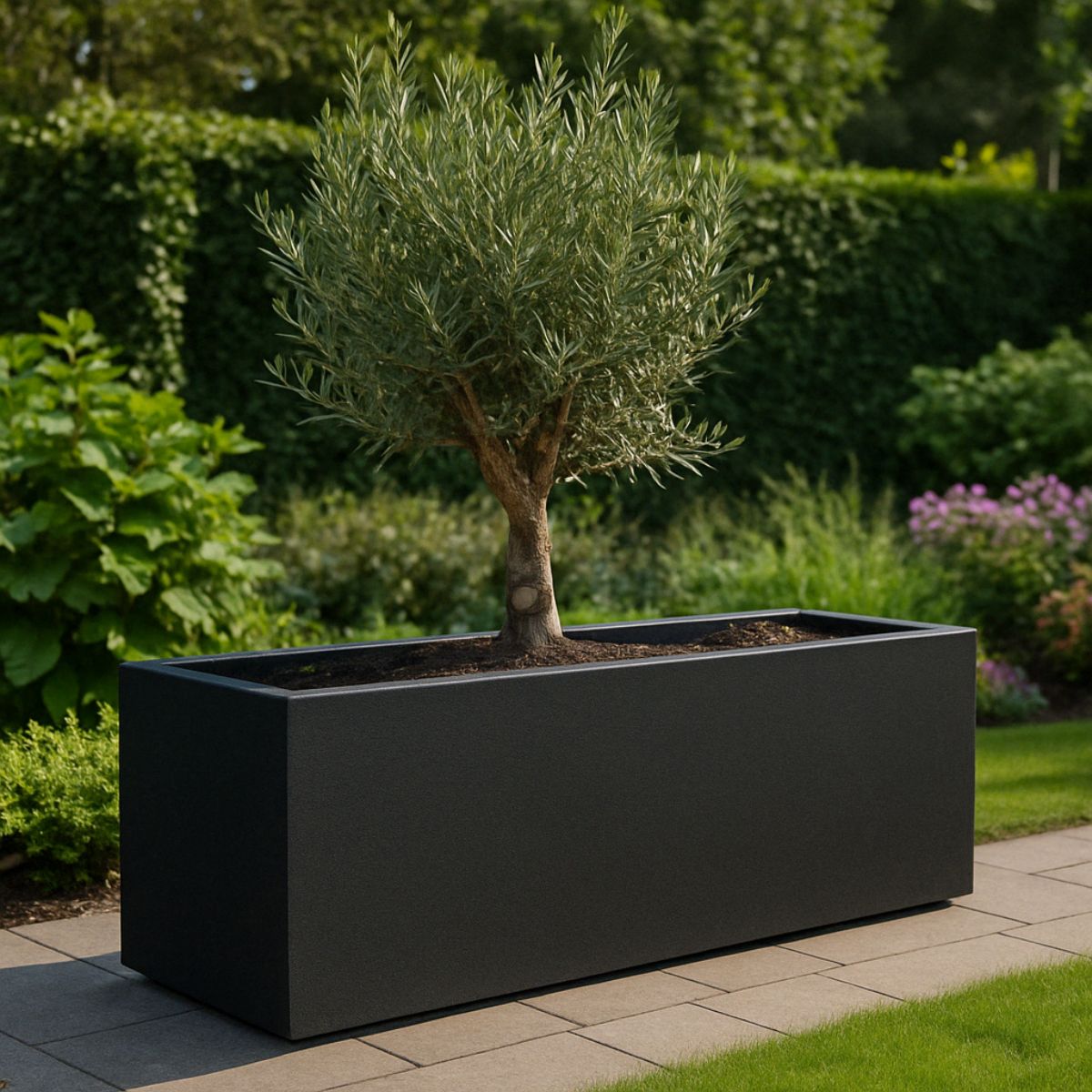 Commandez dès aujourd'hui votre jardinière en polyester 180x60x70 cm Noir-gris (RAL 7021) !