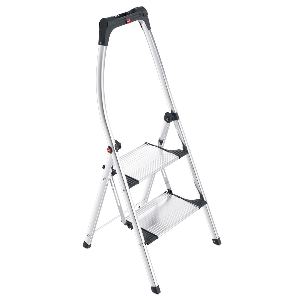 Avec sa taille compacte et ses deux marches, cet escabeau est idéal pour les tâches ménagères ; pour les tâches plus hautes, un modèle avec plus de marches est plus adapté.