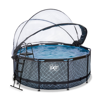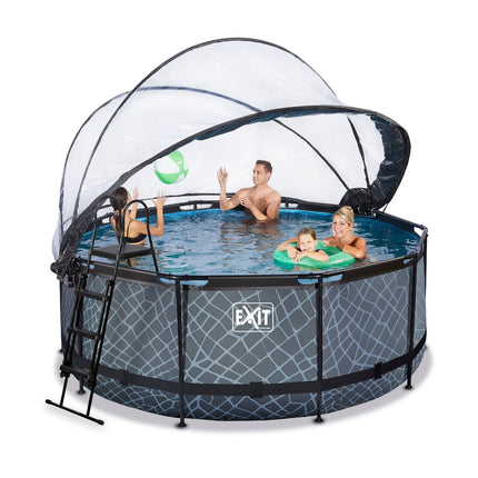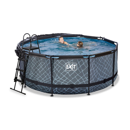 La piscine EXIT Stone ø360 x 122 cm est une piscine ronde à cadre de couleur grise avec auvent. La piscine est équipée en standard d'une pompe de filtre à sable et d'une échelle de piscine, avec lesquelles vous pouvez entrer et sortir de la piscine en toute sécurité. La piscine à cadre offre suffisamment d'espace pour flotter sur un matelas pneumatique. Et vous préférez nager sous l'eau ? La piscine EXIT Stone n'a pas moins de 122 centimètres de profondeur, vous pourrez donc vraiment plonger sous l'eau.
