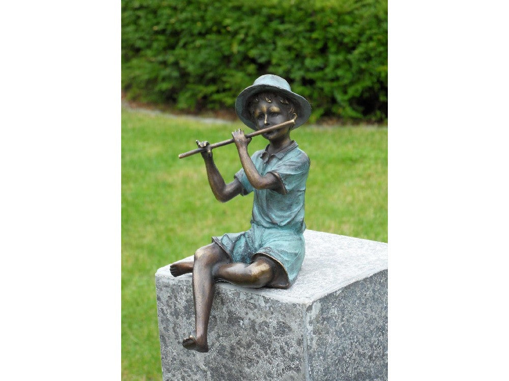 Statue en bronze Garçon à la flûte 20x10x12cm
