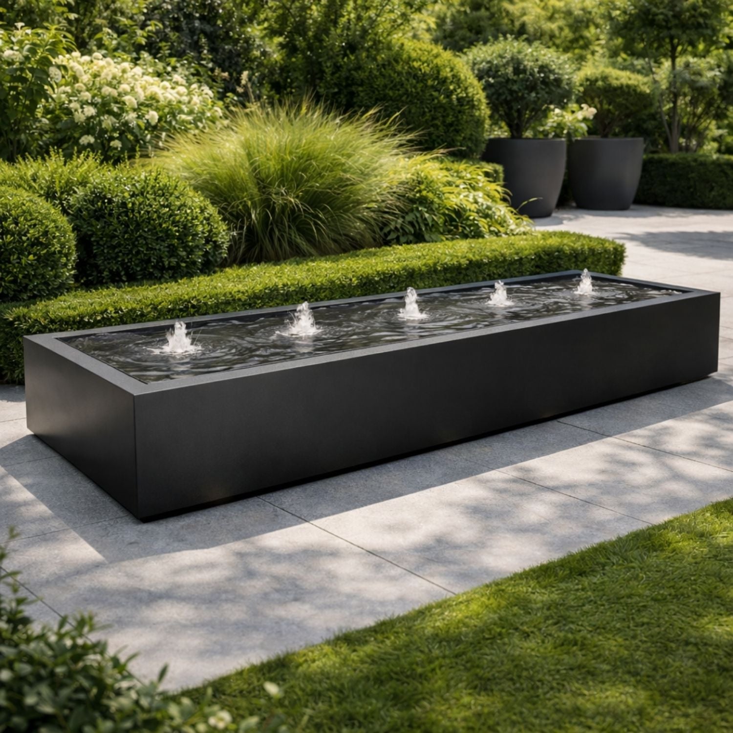 Nos nappes phréatiques sont une décoration unique pour les jardins. Les formes élégantes et angulaires ajoutent une atmosphère et une dynamique supplémentaires à tout espace extérieur. La nappe phréatique en aluminium Geroba Taula rectangulaire 400x100x40cm 103kg s'intègre parfaitement dans la verdure et grâce à la pompe standard et aux fontaines avec éclairage LED, vous pouvez profiter de manière optimale de l'effet apaisant de l'eau courante même dans l'obscurité.